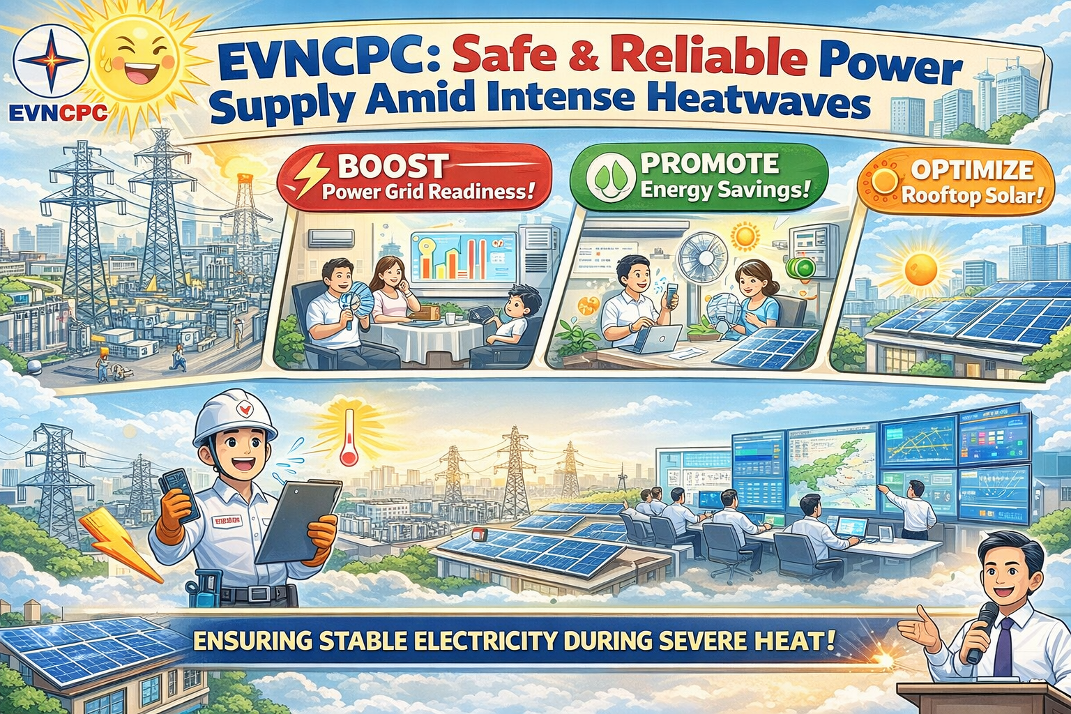 🔌 EVNCPC: भीषण गर्मी में भी सुरक्षित और निरंतर बिजली आपूर्ति का मिशन