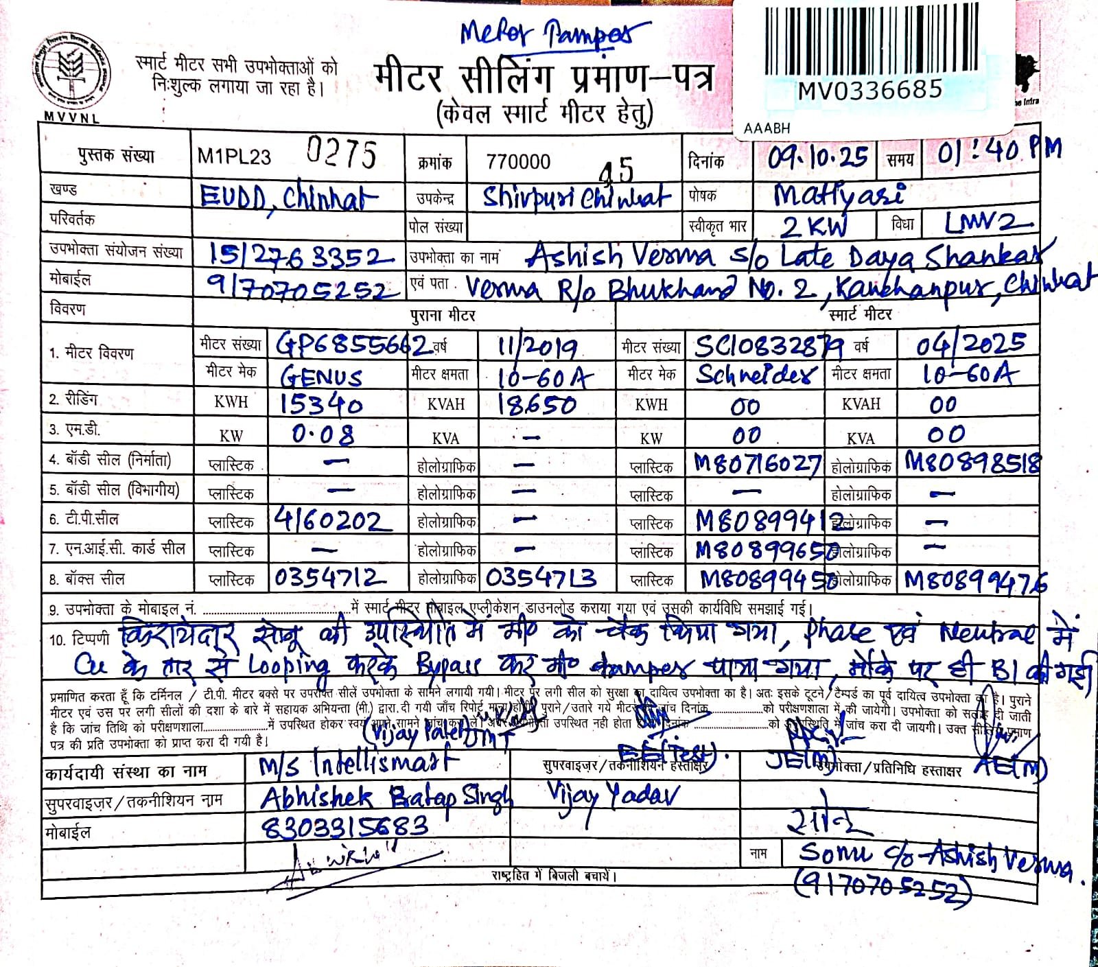 टीम ने मौके से कॉपर वायर बरामद की और तत्काल पुराना मीटर हटाकर नया स्मार्ट मीटर स्थापित किया। जांच रिपोर्ट में स्पष्ट लिखा गया कि फेज़ और न्यूट्रल पर लूपिंग के ज़रिए टेंपरिंग की गई थी।