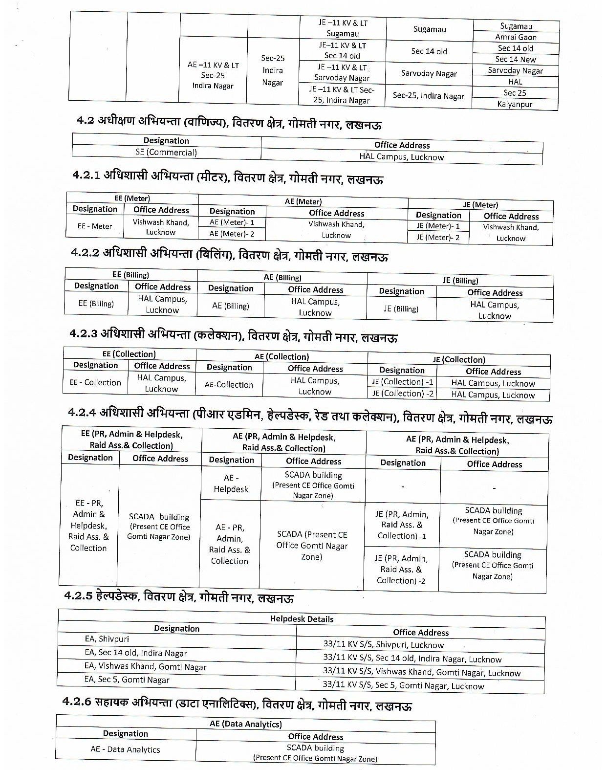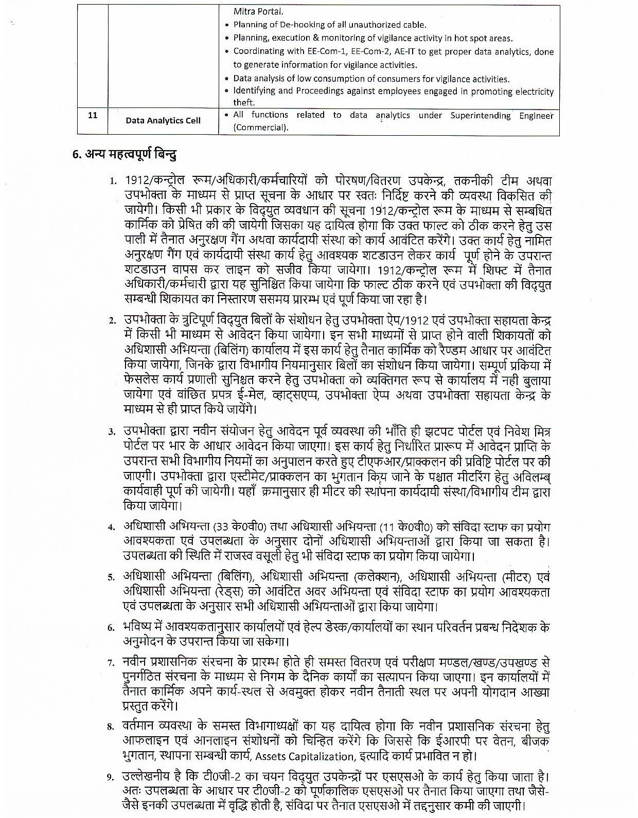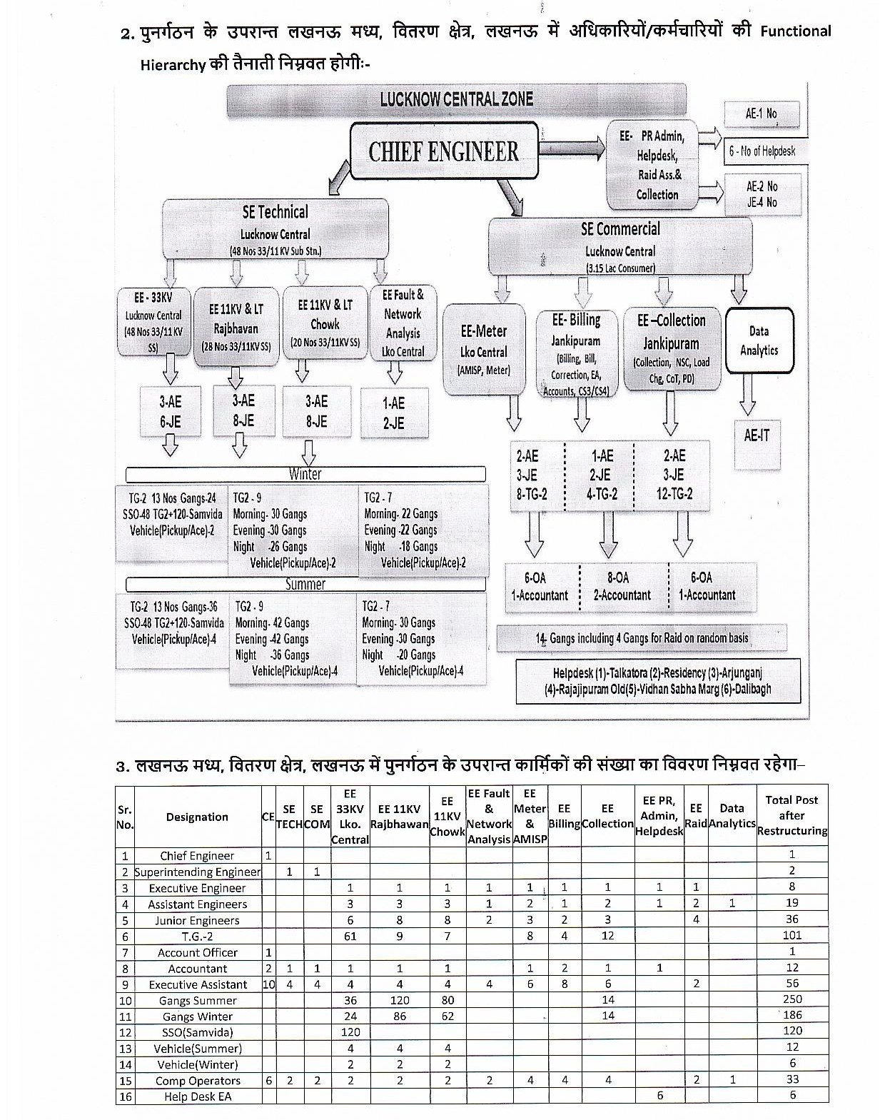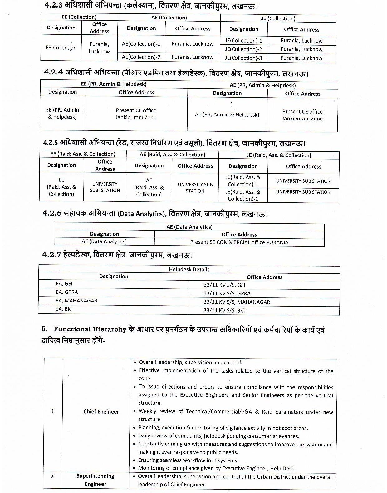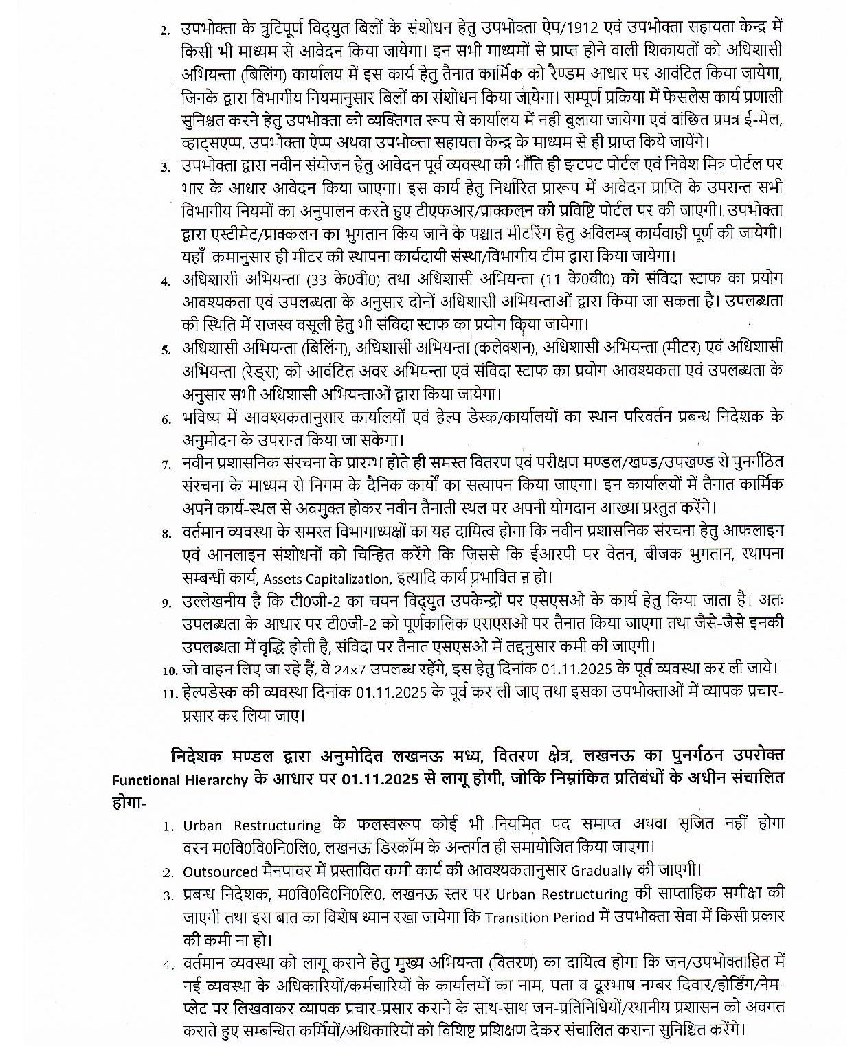 - लखनऊ मध्य ज़ोन में “वर्टिकल मॉडल” के तहत मुख्यालय में अब टेक्निकल, कमर्शियल, बिलिंग, कलेक्शन और एनालिटिक्स विंग बनाई गई हैं।