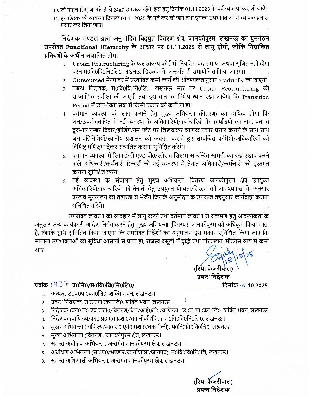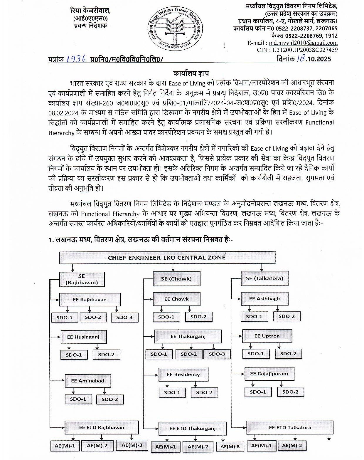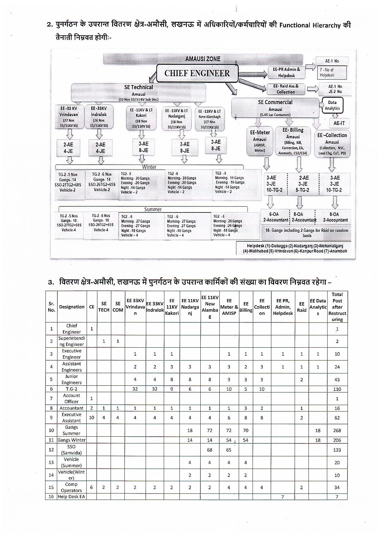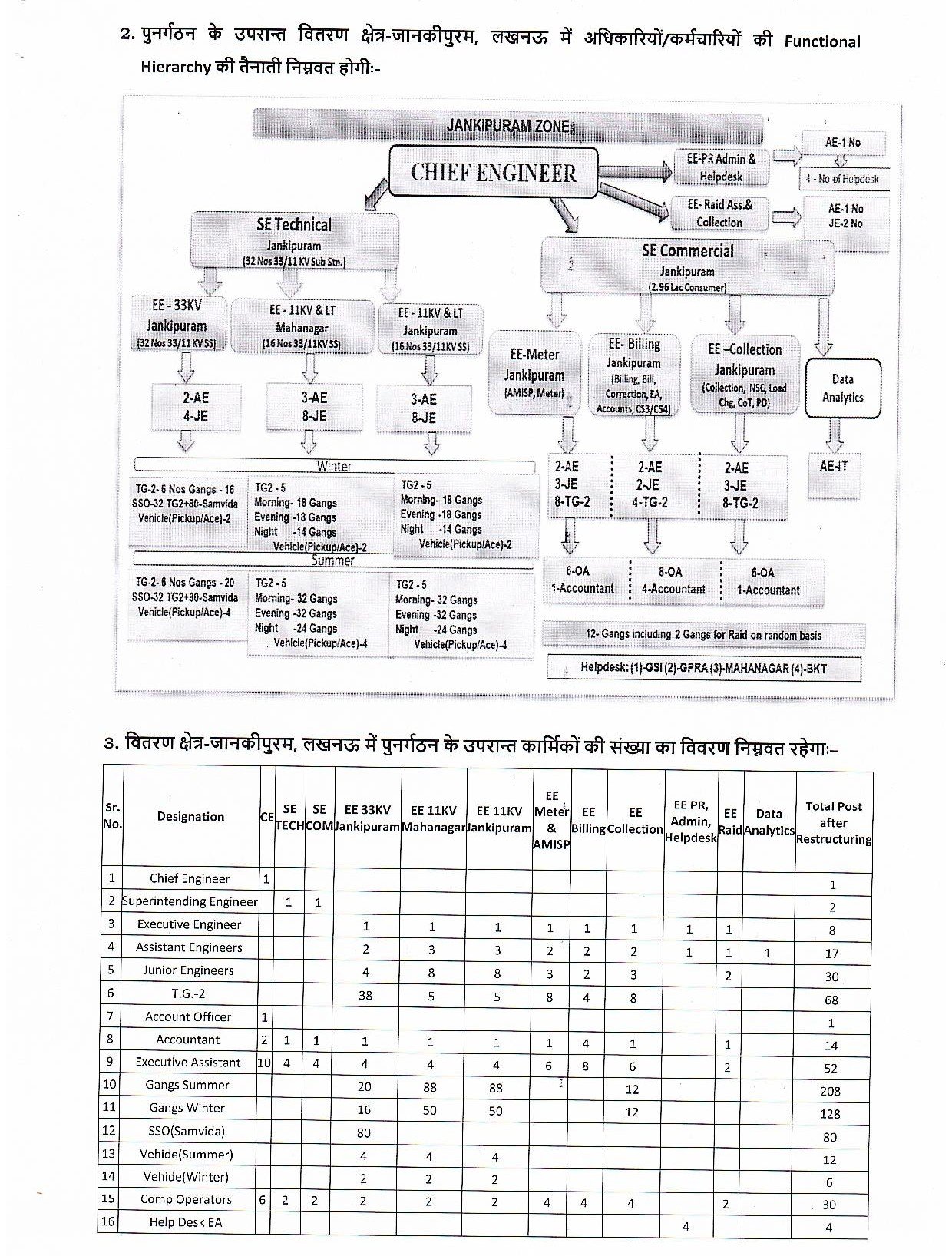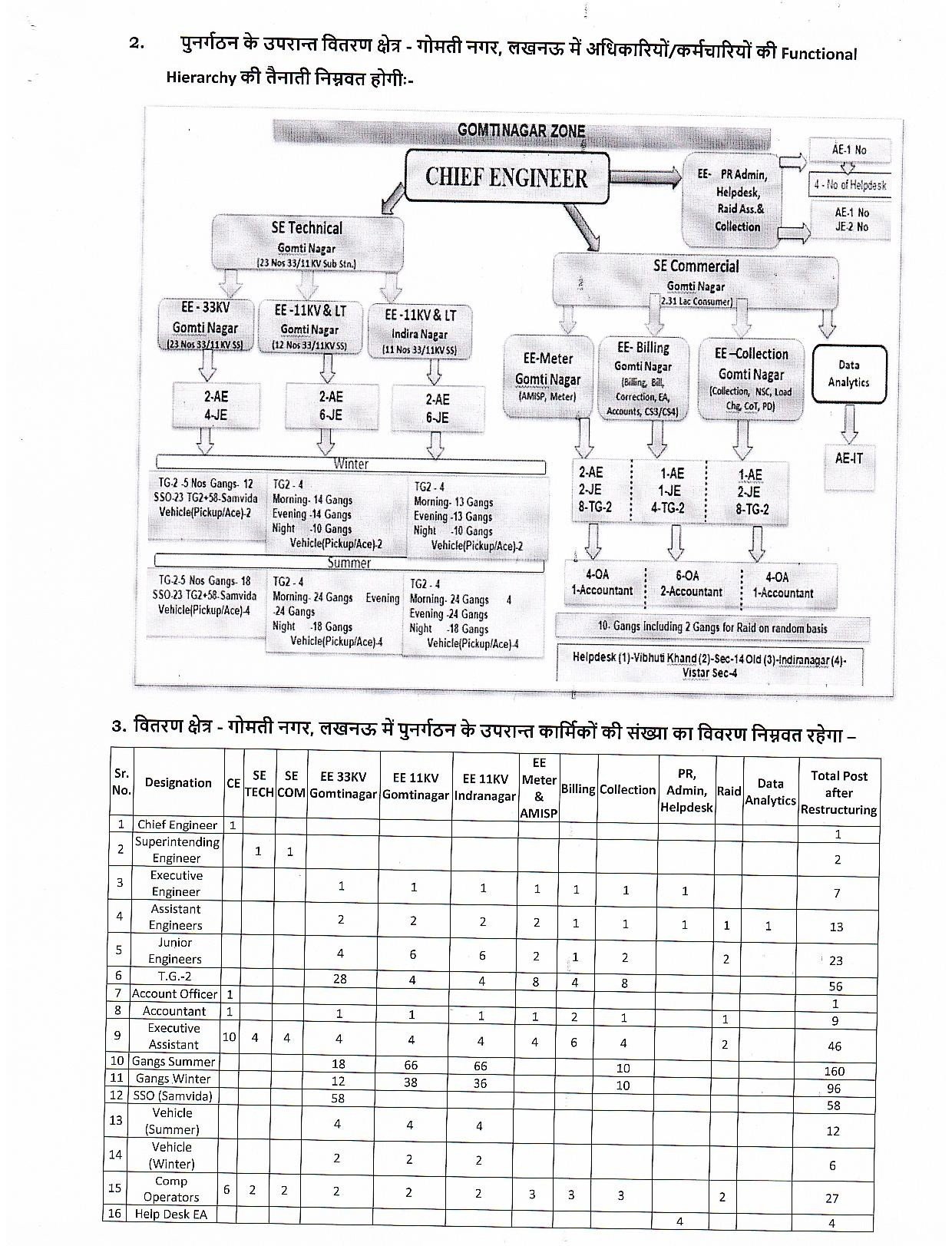 - लखनऊ मध्य ज़ोन में “वर्टिकल मॉडल” के तहत मुख्यालय में अब टेक्निकल, कमर्शियल, बिलिंग, कलेक्शन और एनालिटिक्स विंग बनाई गई हैं।