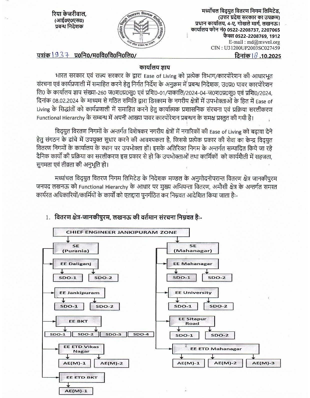 🔹जानकीपुरम ज़ोन वर्टिकल (एकल व्यवस्था) कार्यालय ज्ञापन