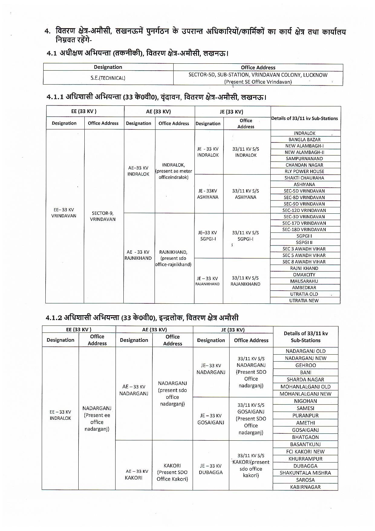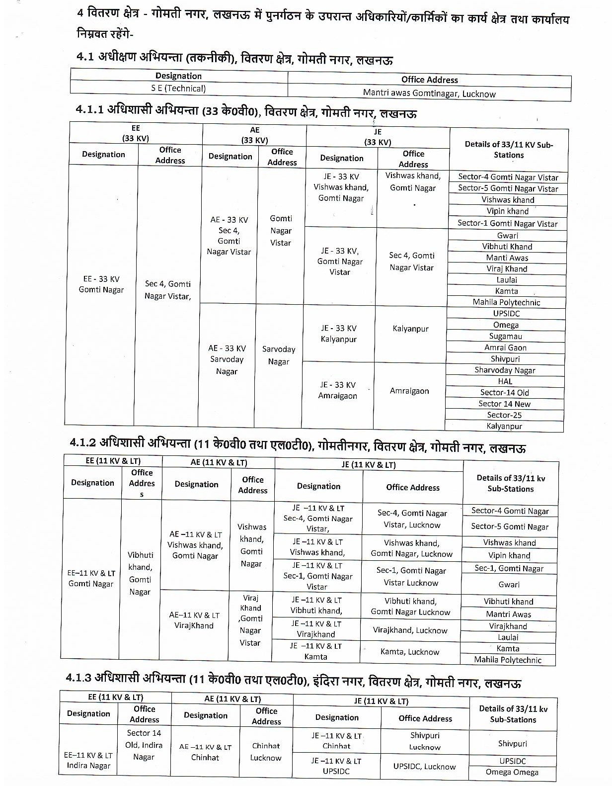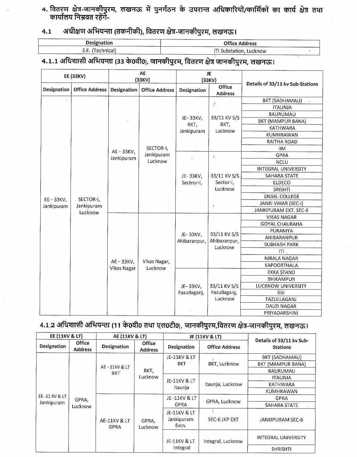गोमतीनगर, चिनहट और इंदिरा नगर क्षेत्र में अब सुपरिटेंडिंग इंजीनियर, एक्जीक्यूटिव इंजीनियर (EE) और सहायक अभियंता (AE) को अलग-अलग जिम्मेदारियाँ दी गई हैं। हर ज़ोन में अब सात नई इकाइयाँ होंगी —