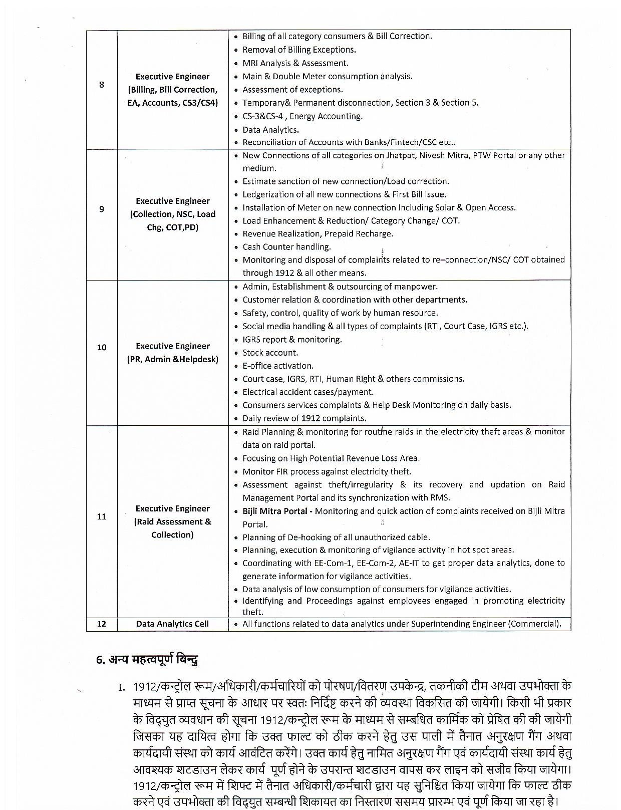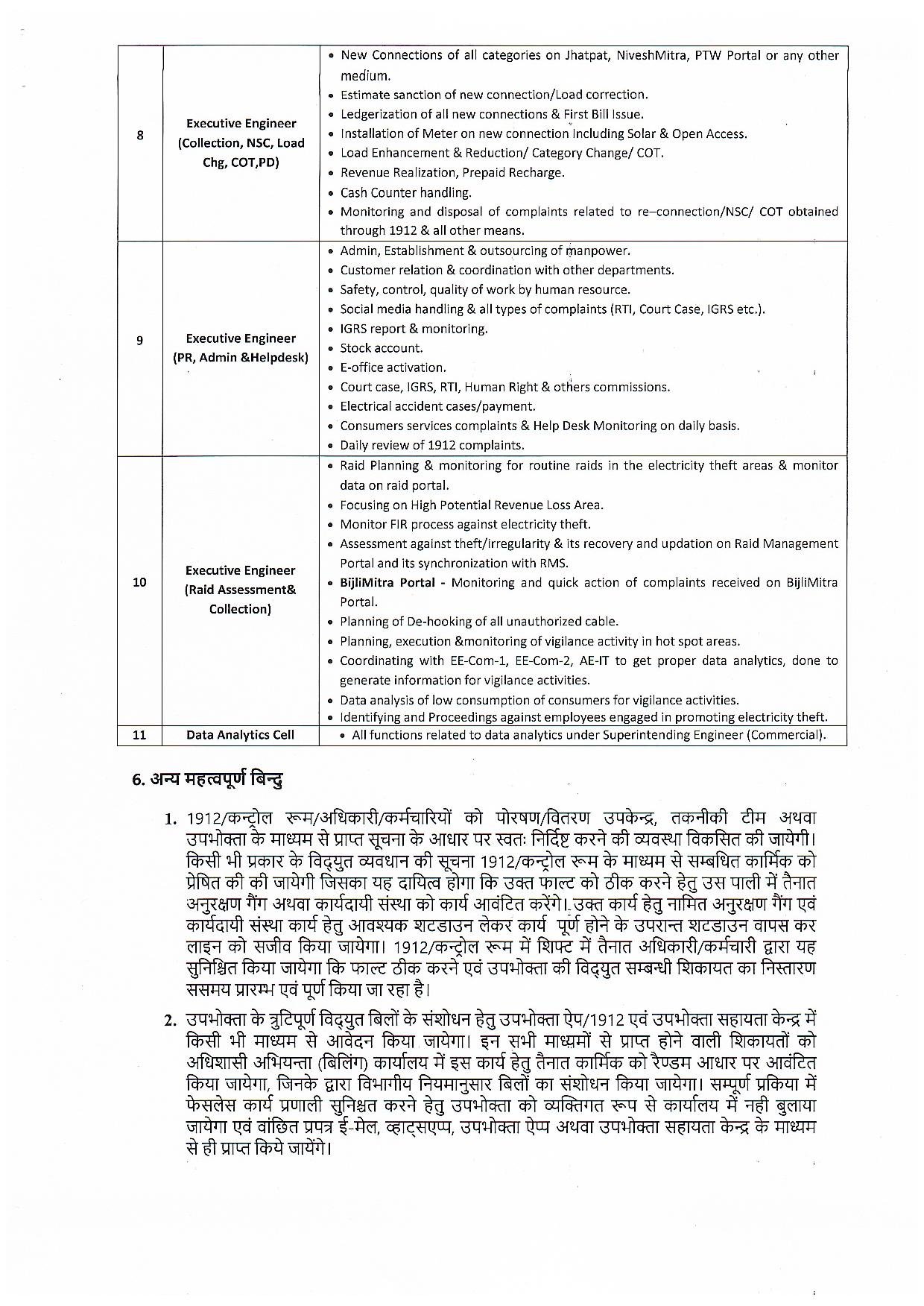 - हर हिस्से की निगरानी चीफ इंजीनियर और नए अधिशासी अभियंताओं को सौंपी गई है।
