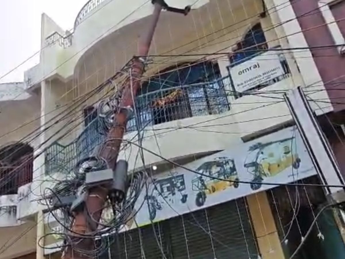 तेज हवा और बारिश के बाद झुका यह पोल अब किसी भी पल जानलेवा हादसे का कारण बन सकता है, लेकिन जिम्मेदारों की नींद नहीं टूटी। मकान में रहने वाला परिवार हर रात मौत के साए में सो रहा है, जबकि बिजली विभाग के अधिकारी फाइलों में “सुरक्षा” का राग अलापते फिर रहे हैं।