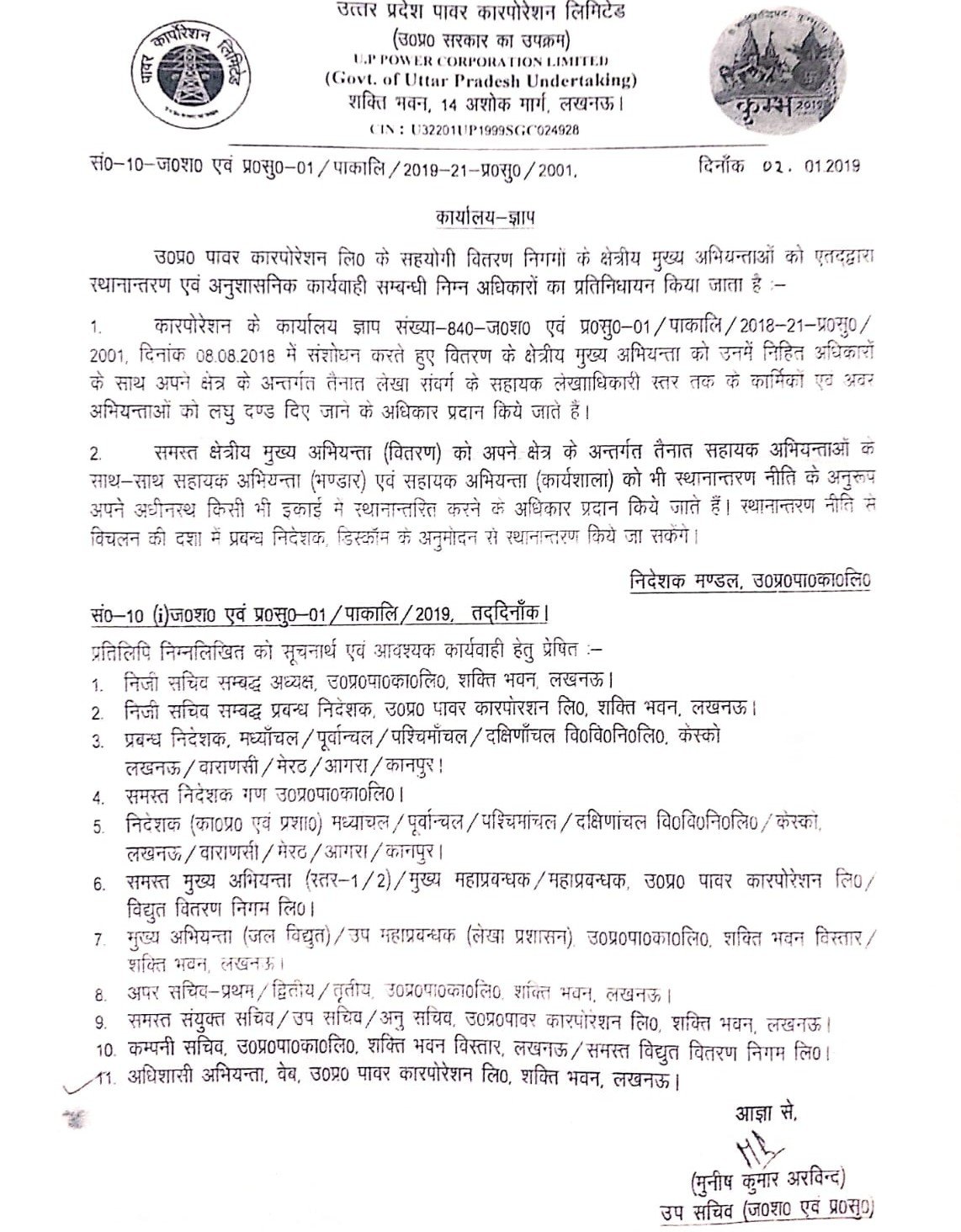 UPPCL मुख्यालय, लखनऊ द्वारा जारी शासनादेश संख्या 10-जनश/प्रशा-01/पातालि/2019-21-प्रशा/2001 दिनांक 02.01.2019 में स्पष्ट लिखा है —