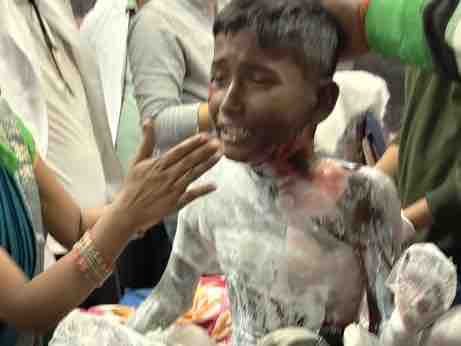 स्थानीय निवासी सुधांशु ने जान जोखिम में डालकर कंबल से आग बुझाई और बच्चे की जान बचाई।