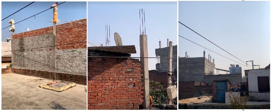 - दर्जनों मकानों की छतों के बिलकुल ऊपर हाई-टेंशन लाइन
