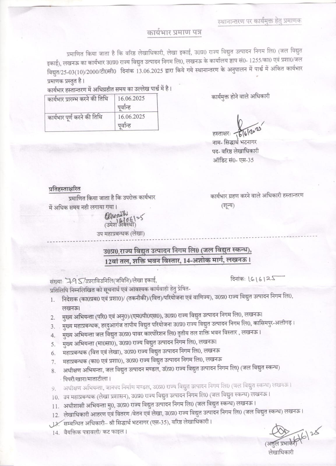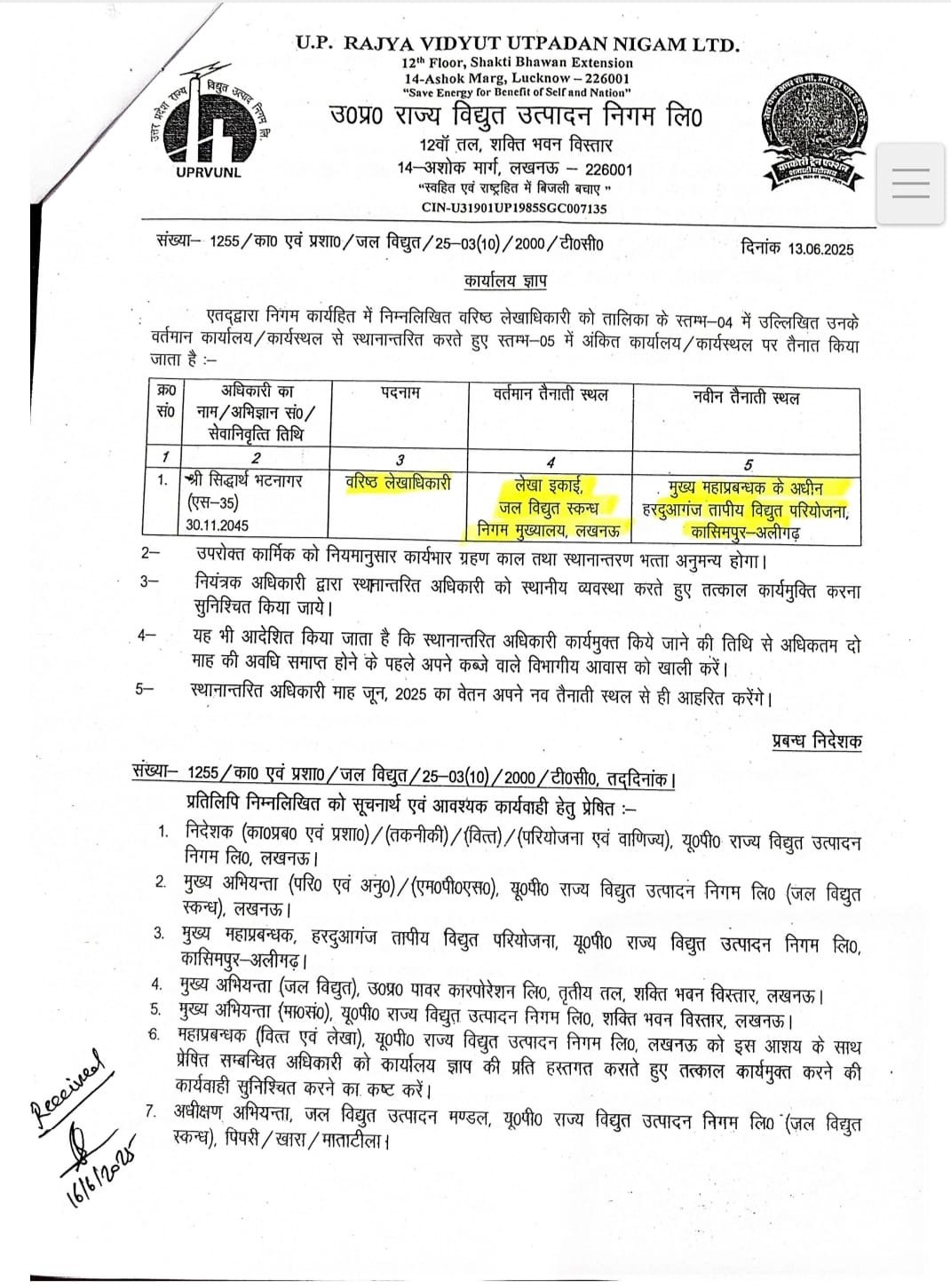 शिकायत के अनुसार जल विद्युत स्कंध में वरिष्ठ लेखाधिकारी का केवल एक स्वीकृत पद था, जिसे विभाग ने “शून्य” घोषित कर दिया और उसी आधार पर भटनागर का स्थानांतरण हरदुआगंज (अलीगढ़) परियोजना में कर दिया गया।