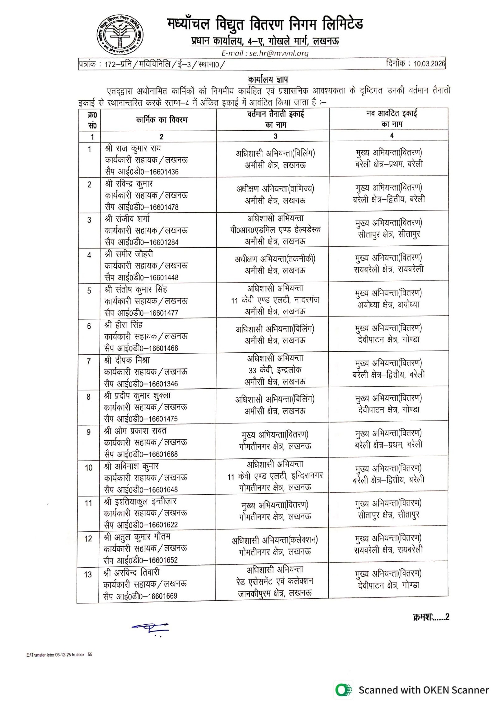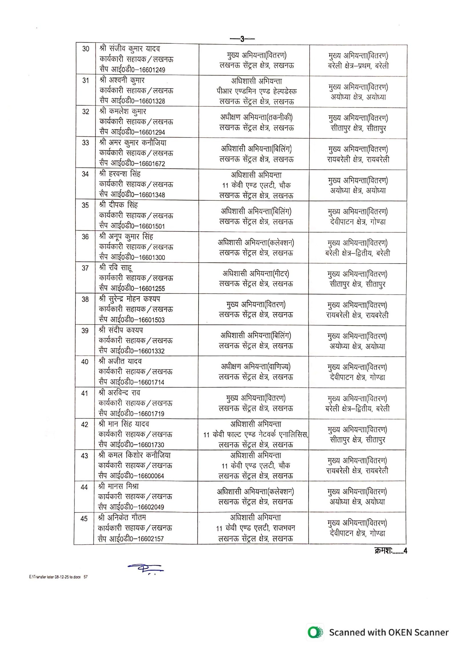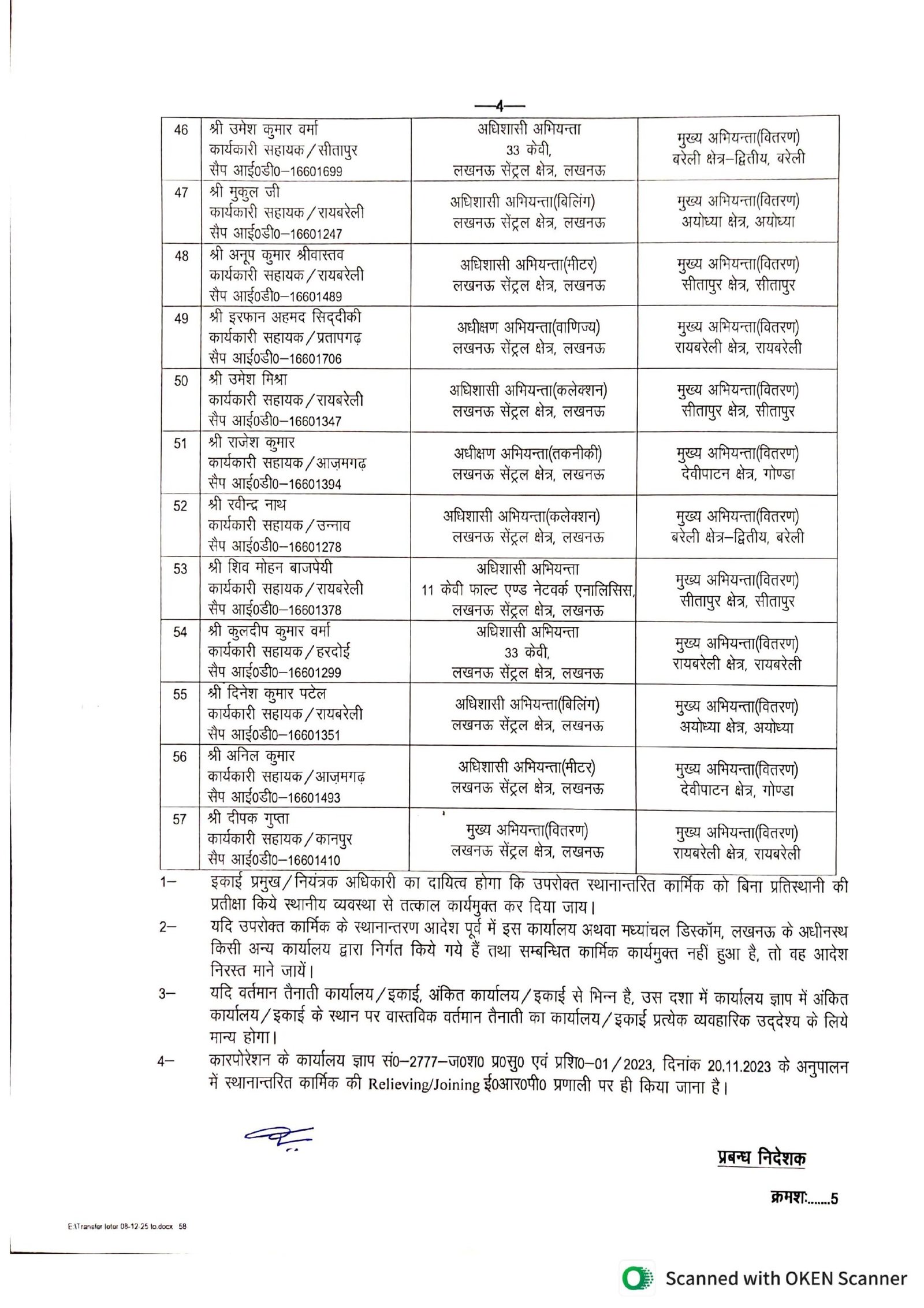 स्थानांतरण करते समय स्वयं पावर कॉरपोरेशन के शीर्ष स्तर से जारी आदेशों की खुली अनदेखी की जा रही है। संलग्न दस्तावेजों के अनुसार 11 सितंबर 2018 को यूपीपीसीएल की तत्कालीन प्रबंध निदेशक अपर्णा यू. द्वारा स्पष्ट निर्देश दिए गए थे कि लिपिकीय संवर्ग के कर्मचारियों को उनके मंडल/कार्यालय से बाहर स्थानांतरित न किया जाए