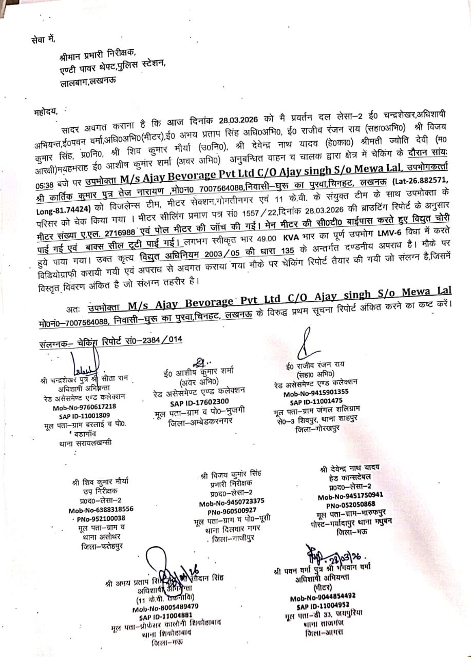 राजधानी लखनऊ के चिनहट क्षेत्र स्थित जुग्गौर में 49 KVA इंडस्ट्रियल कनेक्शन पर लंबे समय से चल रहे सुनियोजित बिजली चोरी के खेल का बड़ा खुलासा हुआ है।