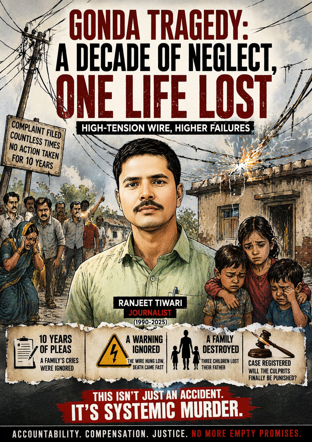 गोंडा में हाईटेंशन तार बना मौत का जाल: 10 साल की अनदेखी ने ली पत्रकार की जान, यूपीपीसीएल की लापरवाही पर उठा बड़ा सवाल